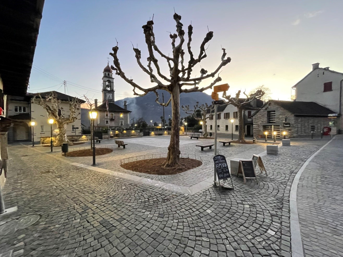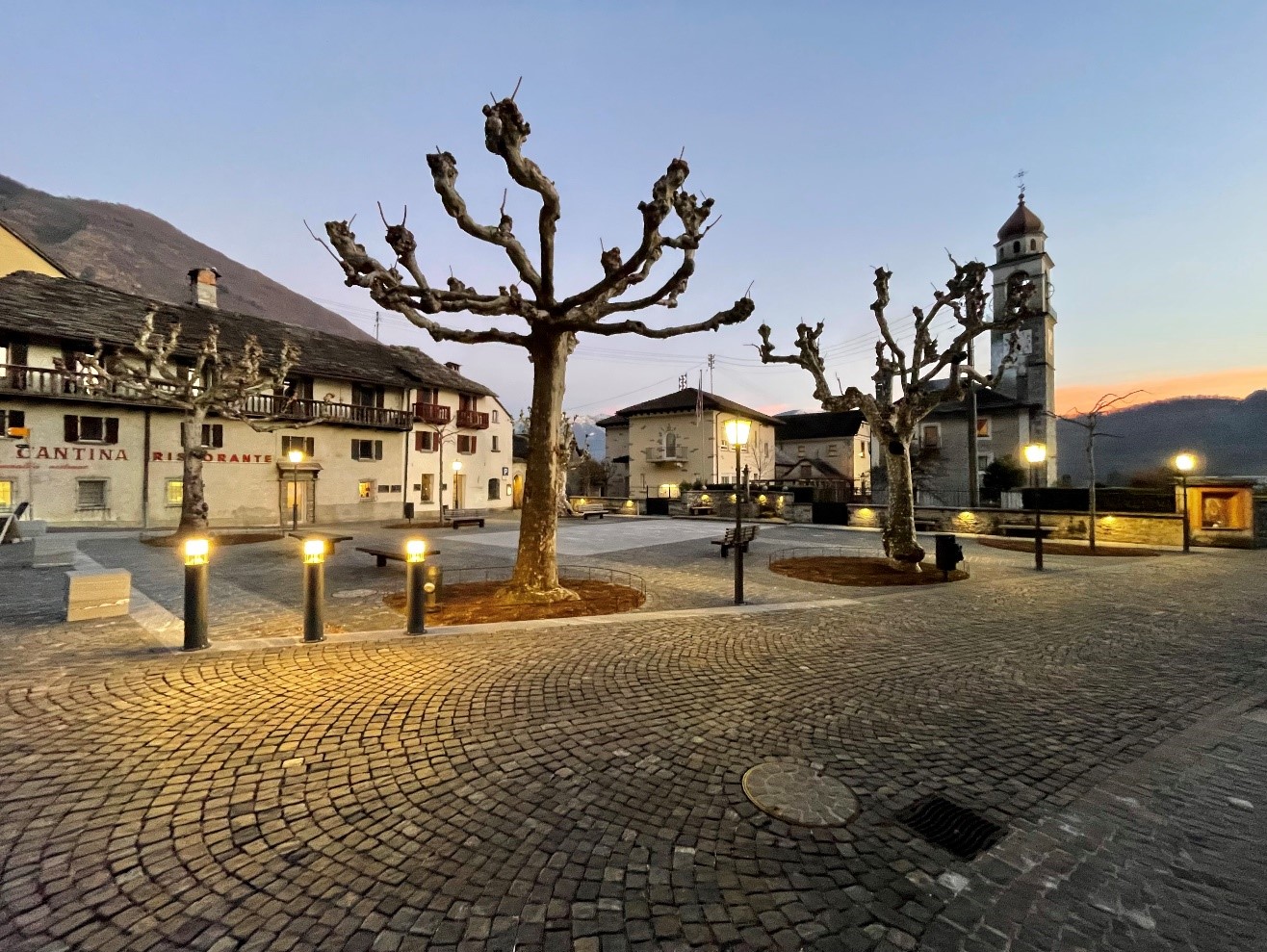- rifacimento completo della piazza con pavimentazione pregiata in cubetti e mocche;