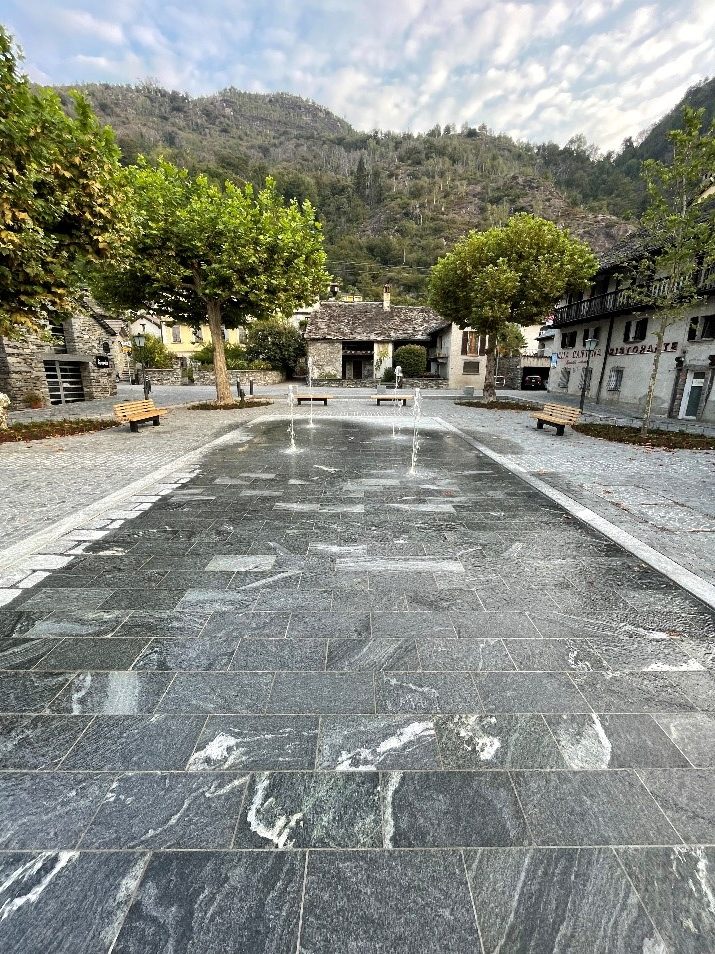 - realizzazione fontana a raso con zampilli su lastricato di gneiss;