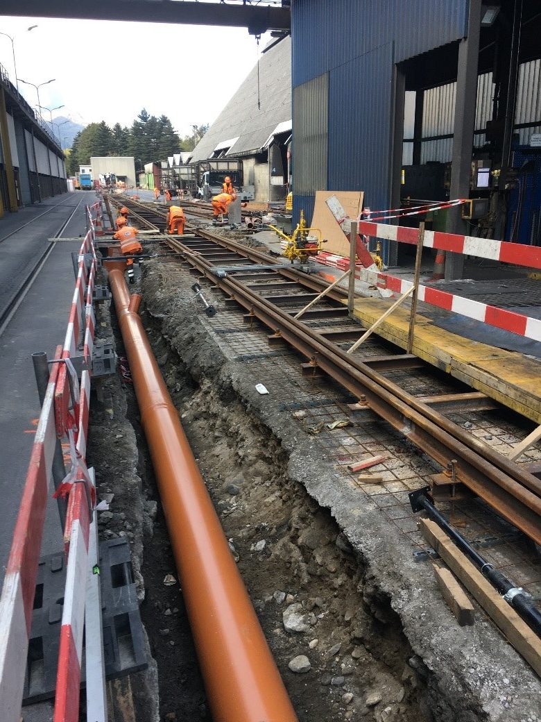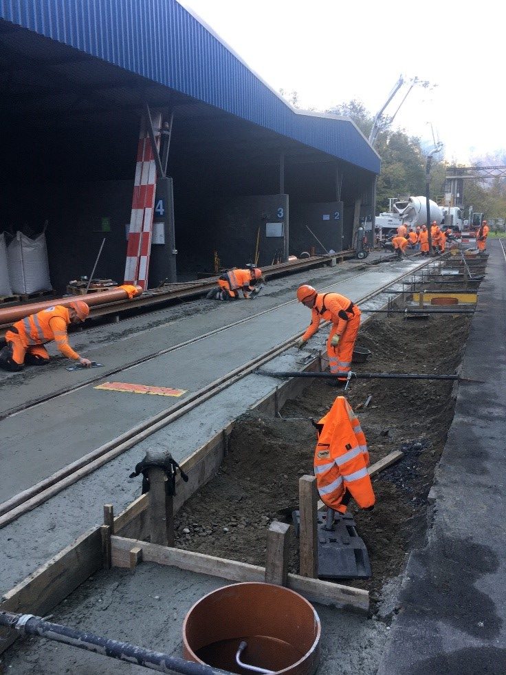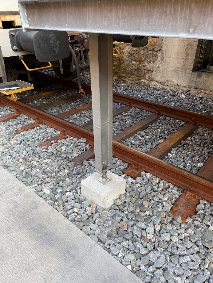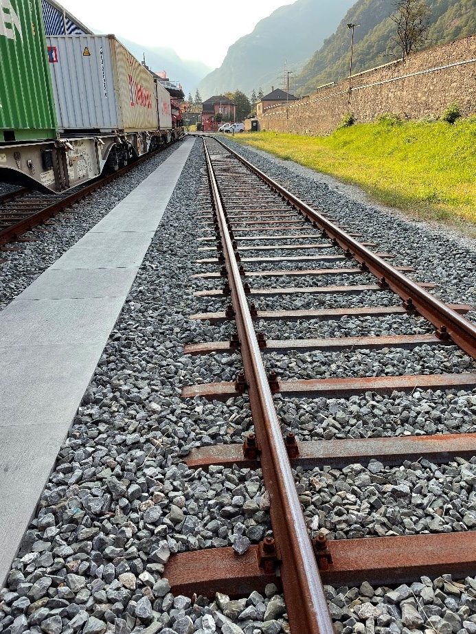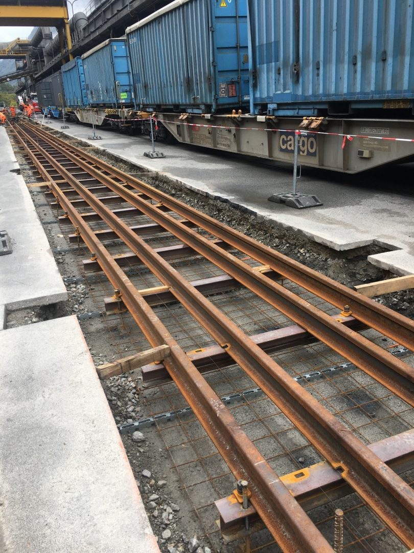 - rifacimento binario con scartamento normale con traverse in acciaio e posa su platea in calcestruzzo;
