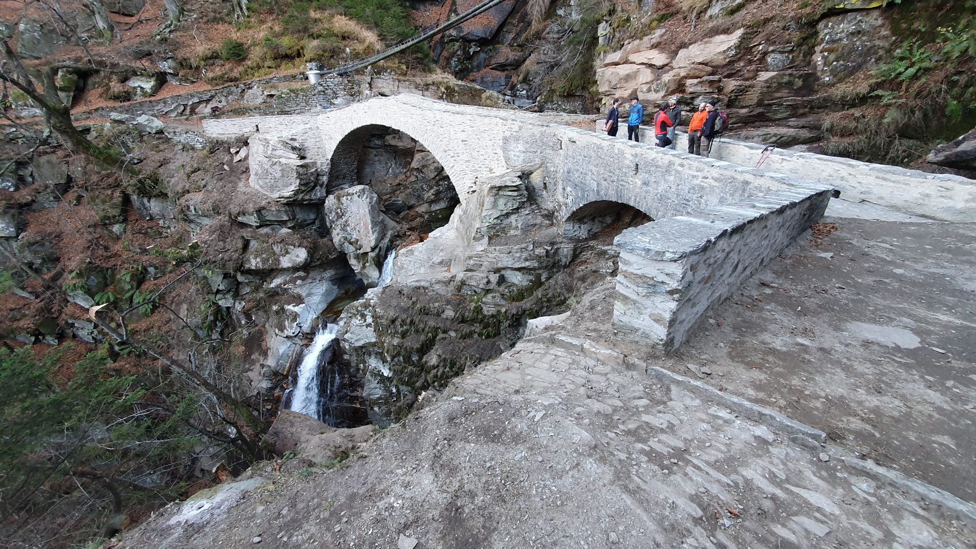 Nell’ambito dell’incarico per la sistemazione dei sentieri e dei relativi manufatti di proprietà del Patriziato di Personico è stato necessario anticipare in modo urgente il risanamento e consolidamento di questo manufatto composto da due ponti ad arco, uno costruito attorno alla metà del 17mo secolo ha forma a schiena d’asino con la tecnica a secco e l’altro ricostruito nel 1922, dopo il crollo ad inizio ‘900, con l’utilizzo di malta e sassi.